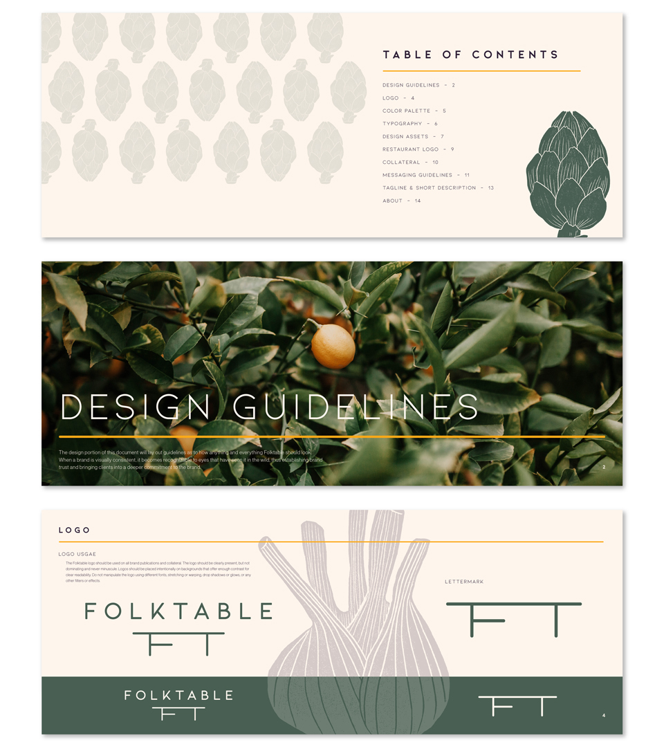 The Folktable website was built on the foundation of the brand guide our amazing design team created. With its simple navigation, earthy colors, clear copy, and stunning product photography, the website gives users an elevated online experience to match the elevated culinary experience that Folktable provides.
